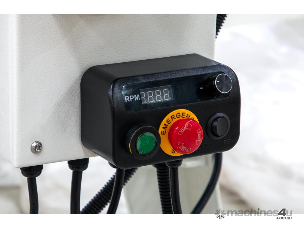 With a magnetic control box that can be conveniently placed on the bed, without obstructing your work, this lathe will maximizes efficiency. It also provides versatility with options like an Index Head for precise spindle locking at 15° increments, a 13-1/2” Bed Extension that extends the distance to 762mm and increases the swing to 381mm, and the capability for outboard turning with an optional bed extension.