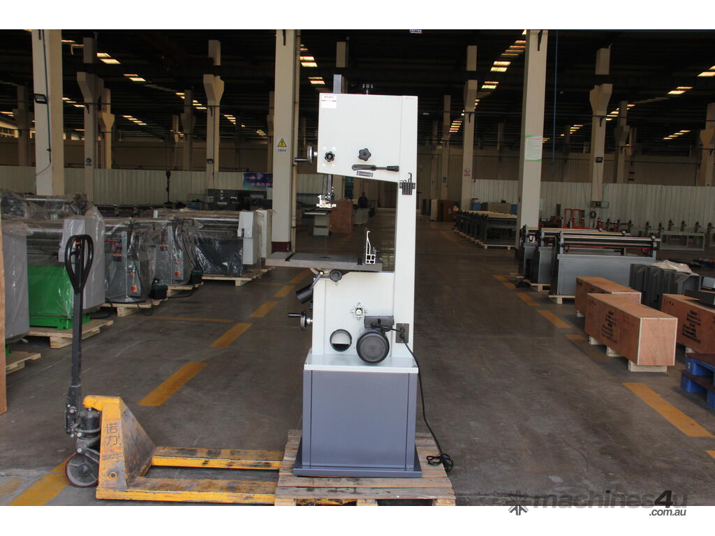 The WBS-14 is a robust 356mm (14") bandsaw engineered for precision woodworking and material cutting, ideal for hobbyists, professional woodworkers, and small workshops. Powered by a 1.1 kW single-phase motor running on 240V 50Hz (standard Australian electrical setup), it delivers reliable performance with two speed settings (440m/min and 900m/min), allowing versatile cutting of wood, non-ferrous metals, and other materials. The machine features dynamically balanced heavy cast iron band wheels that create a flywheel effect for smoother, more powerful cuts, reducing vibration and enhancing accuracy.