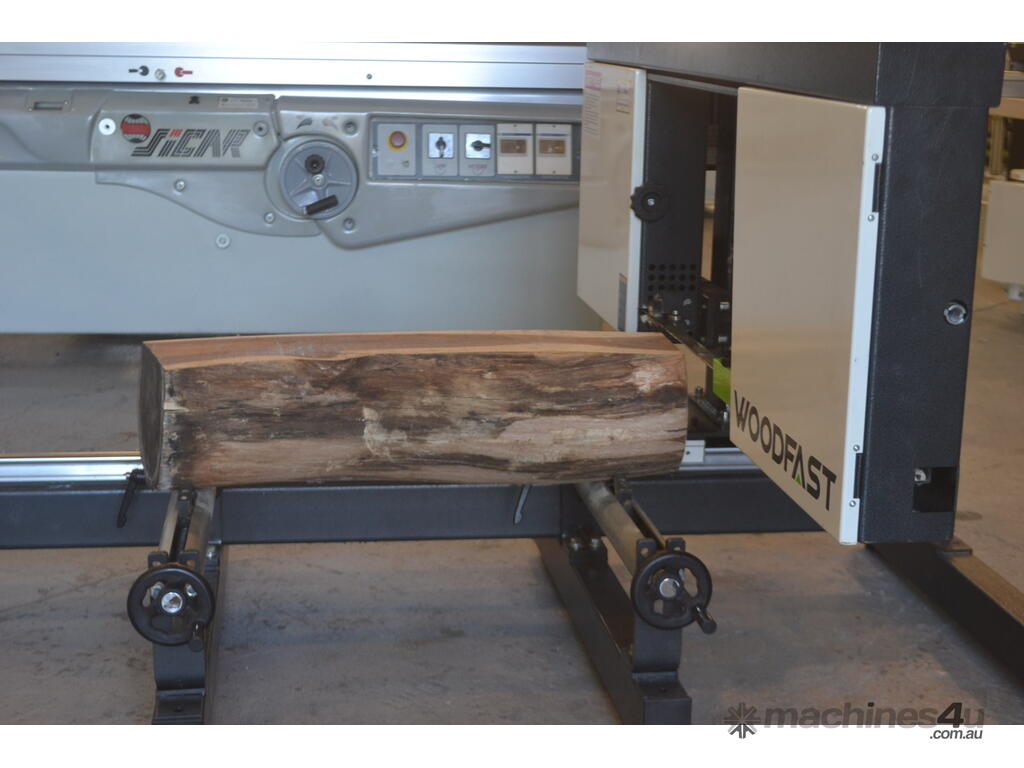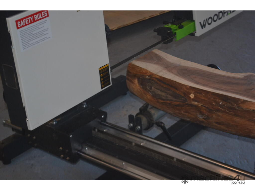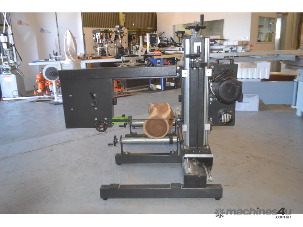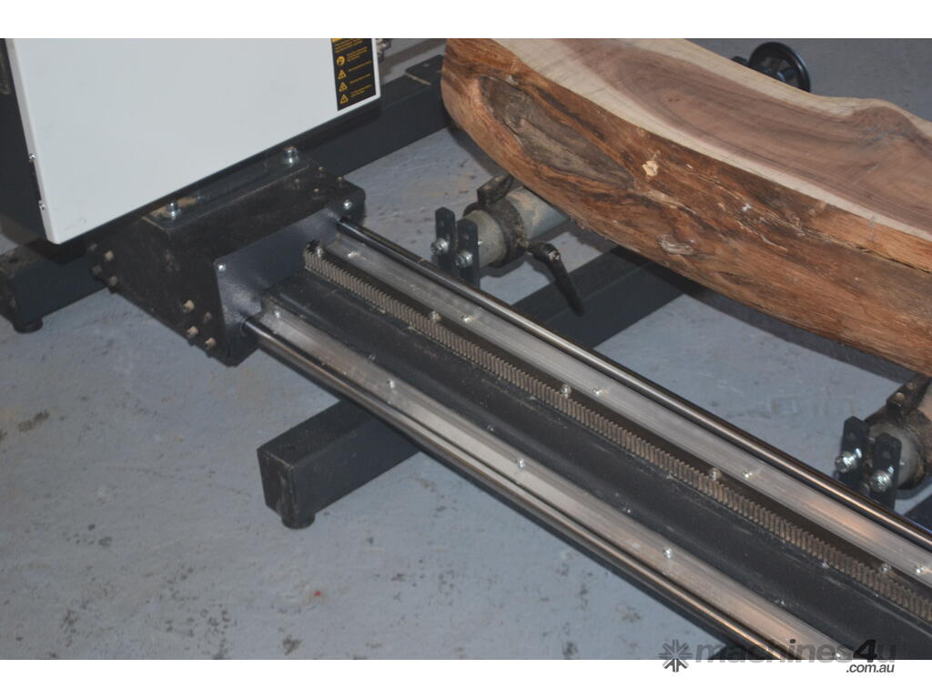 The log stays stationary whilst the saw head passes along its length, slicing boards at the height you choose.