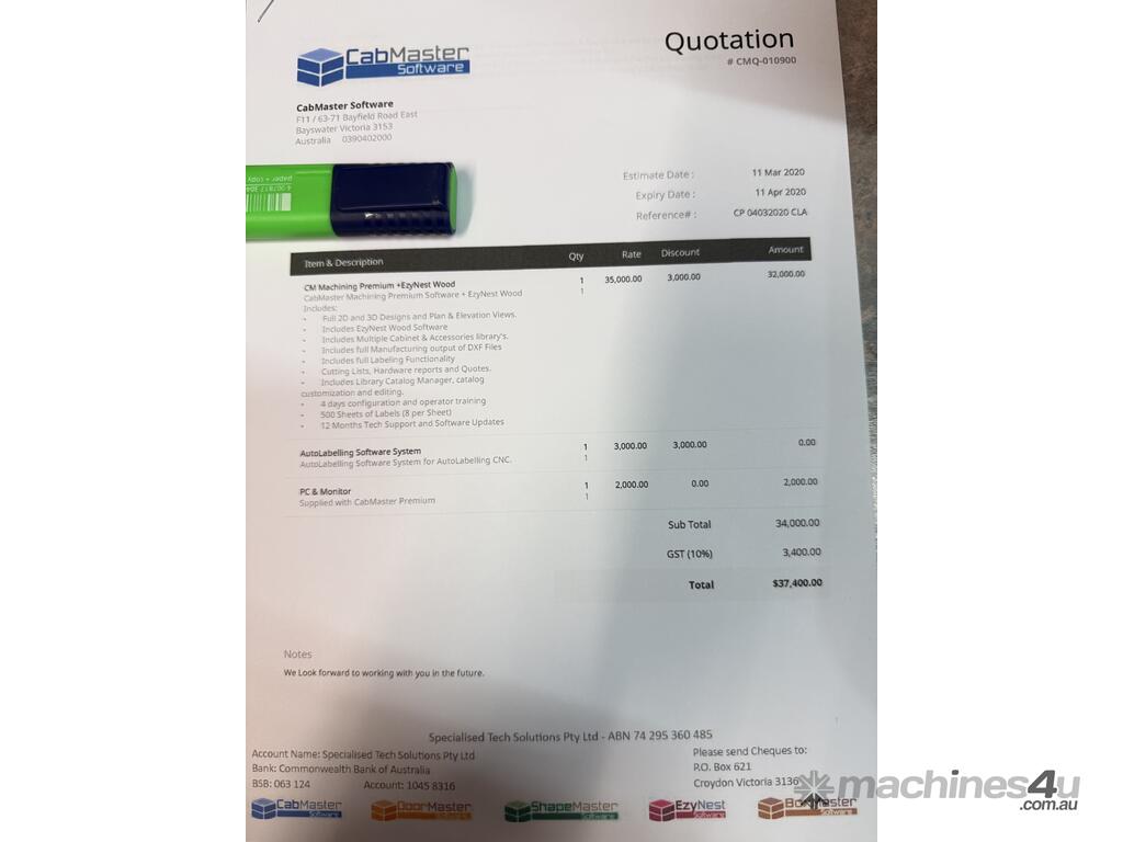 Used 2020 Woodtron complete with fully automatic labelling also supplied with CabMaster Machining Premium + Ezy-nest wood software & full Airtight dust extraction unit & all piping included