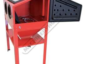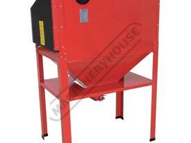 The SB-200 sandblast cabinet is of a compact design for home workshop or garage applications. This heavy duty powder coated unit has a fully sealed side door entry allowing larger jobs to be placed into the cabinet without any obstruction and uses a secure single lock latch system, the hopper below stores and re-circulates the blast medium.