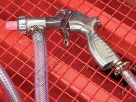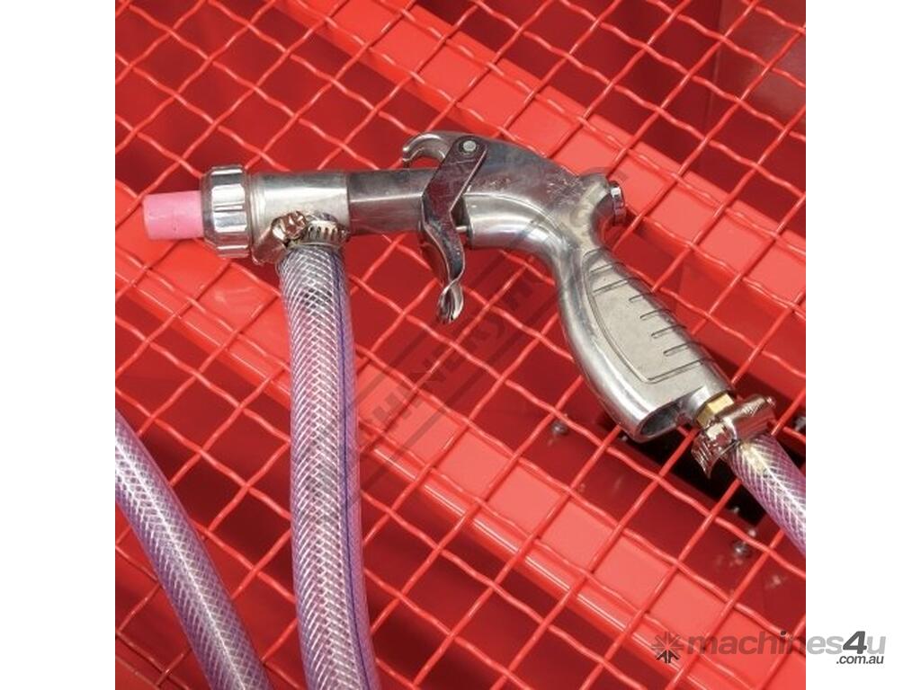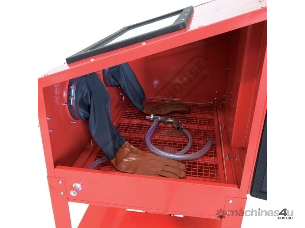Its uses are many and varied from blasting rust, paint, dirt and any other foreign material from your current project to etching work (e.g. glass) with the use of the correct blast medium. This cabinet is supplied with a LED work light, protective gloves, blast gun, replacement protective screens and an assortment of ceramic tips. It also has provision to connect a dust extraction system via the side vent when heavy sandblasting is required.