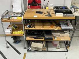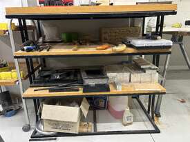 Workstation Including Contents. Please Note Forklift Will Not Operate In This Area. Please Note This Is Located At Basement Level With Steep Entrance And Exit. Height Maximum Is 2.1m. Inspection Highly Reccommended.