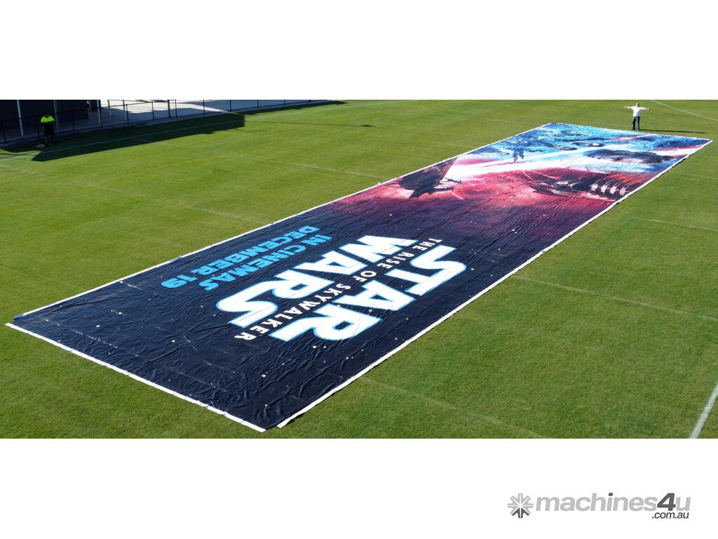 Printed on 490gsm (14.45 oz/yd²) PVC.