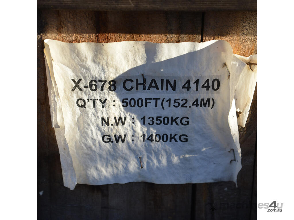 X-678 drop forged rivetless chain is made of hardened SAE 1053 carbon steel links and thoroughly hardened SAE 4140 alloy steel pins. Provided in 10' (3.048 m) long sections with 20 pitches. 56 ton (50.803 metric tons) capacity. This chain is designed for high strength , durability and fatigue resistance.
