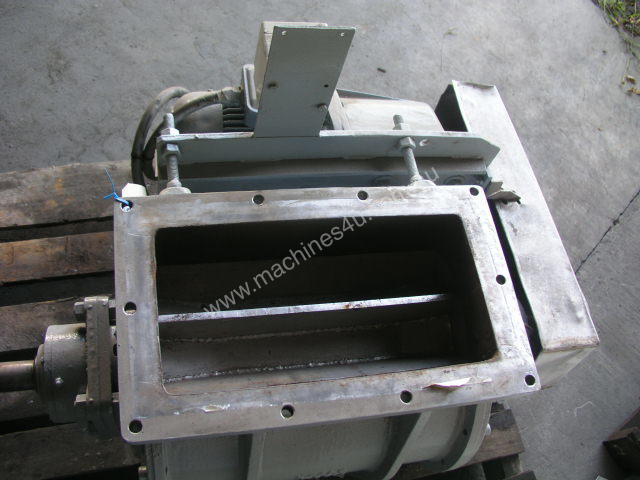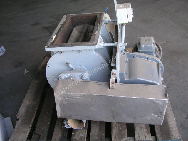 Valves-Rotary Valve (Blow Through), IN: 430mm L x 220mm W, X3402 INCO25 Material : Stainless Steel Body & Stainless Steel Blades. Valve Complete With Motor ( No Detail) Gear Motor Chain Driven. Valve Suited For 100mm Blow line Diameter Of Valve Body : 370mm.