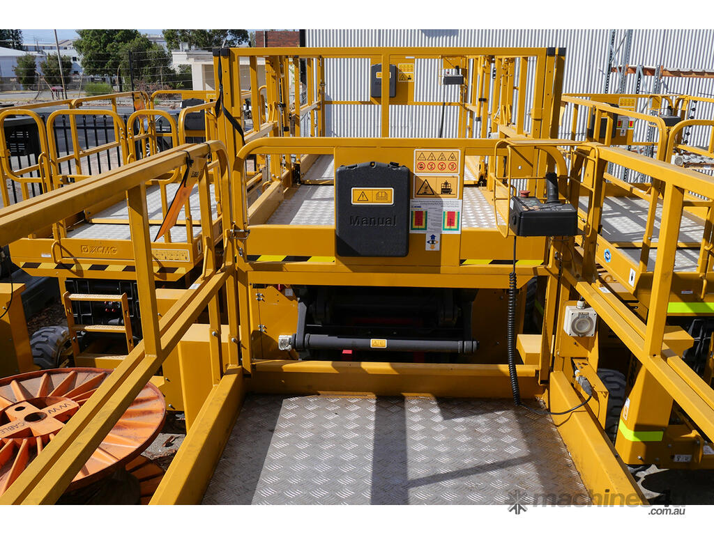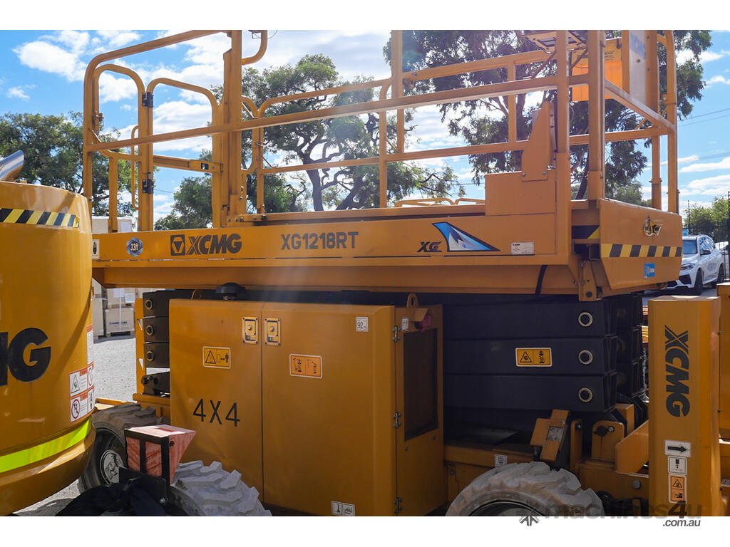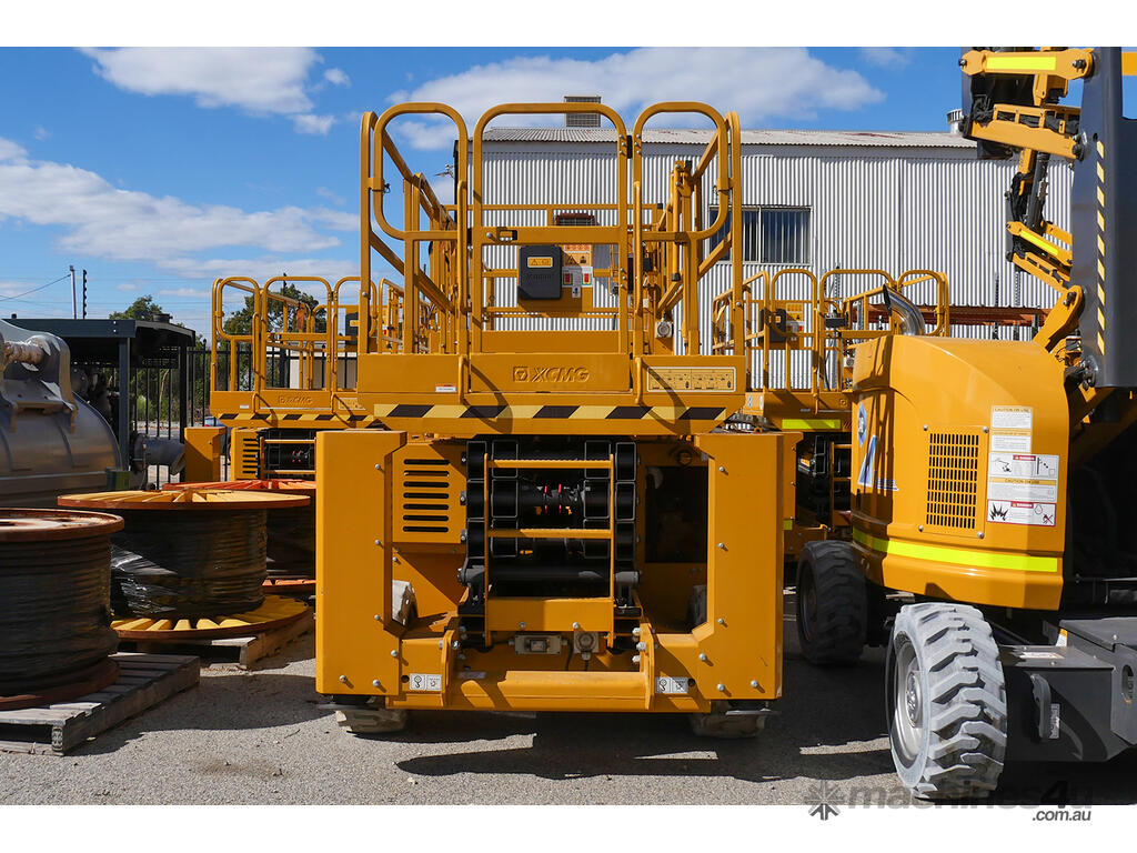 The XCMG Australia XG1212RT Rough Terrain Scissor Lift is expertly designed for versatile material handling in warehouses and industrial settings. This lift combines power and precision for a range of tasks.