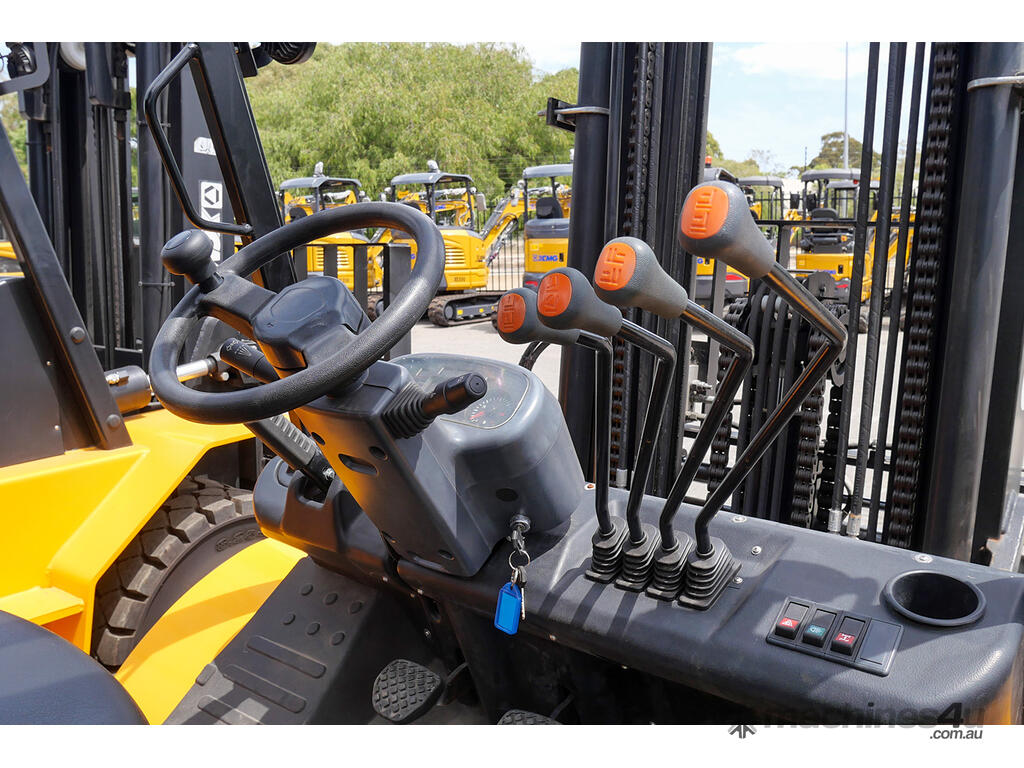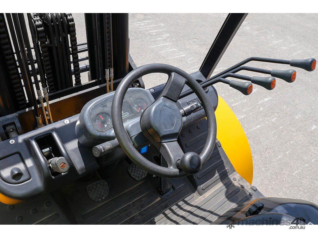 XCMG's FD35T-DNJE1 rough terrain forklift features ergonomic operator controls, low cost of operation, and easy maintenance.
