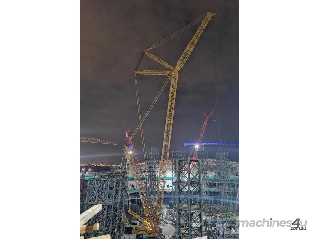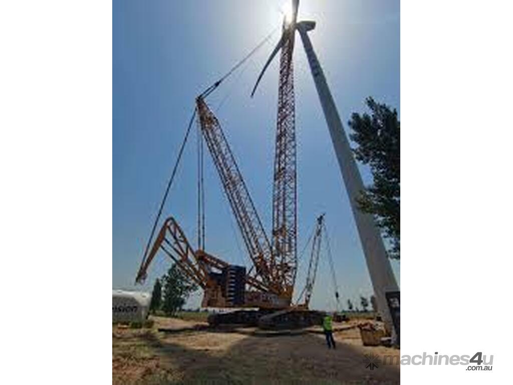 Specialized crawler crane for installing wind turbines with hub height up to 160 m. Boom plus jib of 165 m+12 m for installation of wind turbines, longest combined boom and best load charts in its class, facilitate to install wind turbines of 3 MW with hub height up to 160 m; the global pioneering technology for changeable boom width, leads to a transport width of less than 3 m, more economical transport; wind power hook block, double-winch hoisting, 200% improvement in lifting efficiency.