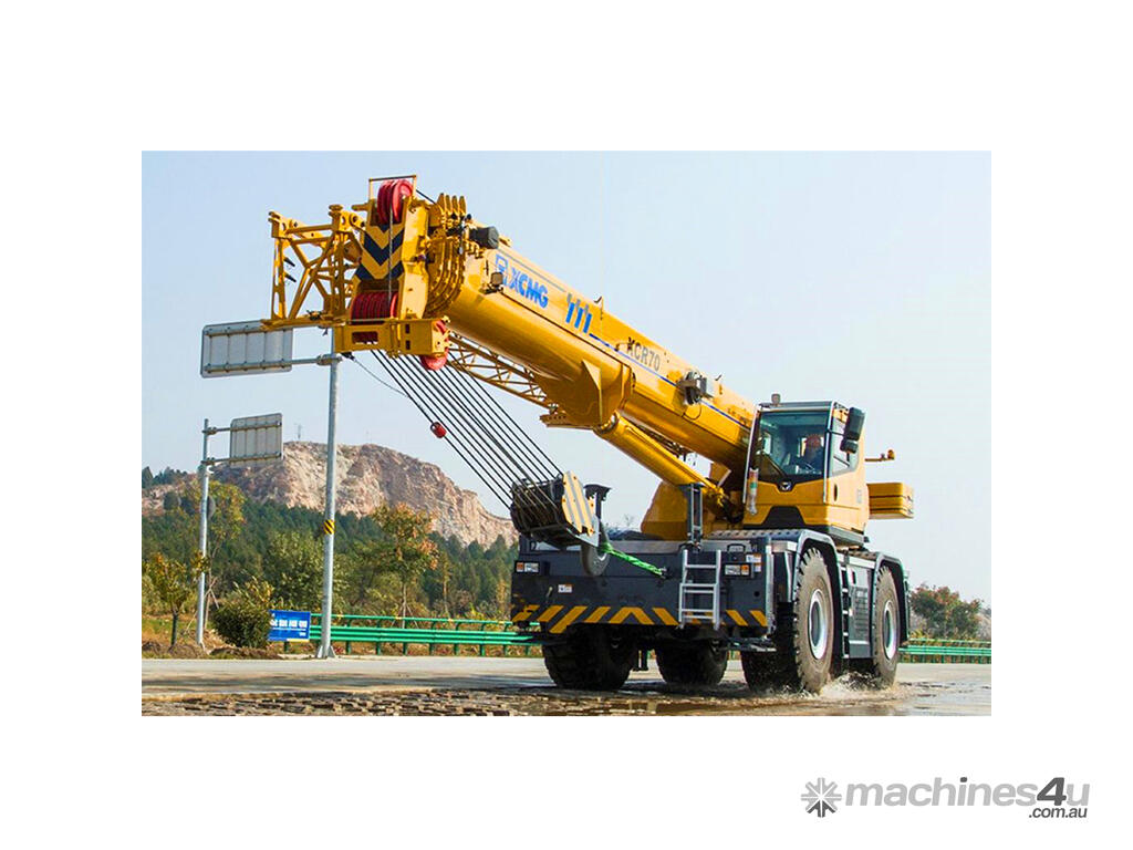 70 ton rough terrain crane with best lifting capacity in its class. Five-section boom of 45 m,  best-in-class working range; min. turning radius of 6.5 m, smallest in its class, better site adaptability; innovative self adjustment of turning angle, multi-mode steering technology, more precise control and more comfortable manipulation; integrated new energy-saving hydraulic system and ECO energy-saving control technology, lower energy consumption and more economical operation cost.