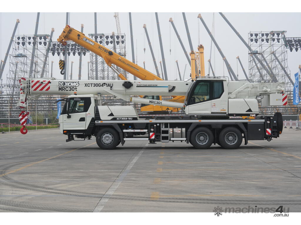 The XCMG XCT30G4-1AU is a 30-tonne truck-mounted crane designed for fast and efficient lifting on Australian roads and job sites. Built on a high-performance chassis, it combines mobility, reliability, and lifting power in one package. With a telescopic boom and advanced hydraulic system, its ideal for construction, utility work, and general lifting applications. Easy to transport and quick to set up, the XCT30G4-1AU offers excellent reach, stability, and productivity across a range of terrains.