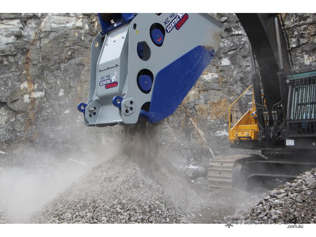 • Patented isolating jaw movement, ensure high productivity and quality of the crushed products. This key feature developed by Xcentric ensures the material is crushed without a compacting effect & Guaranteeing at least 35% greater production than conventional crusher buckets.