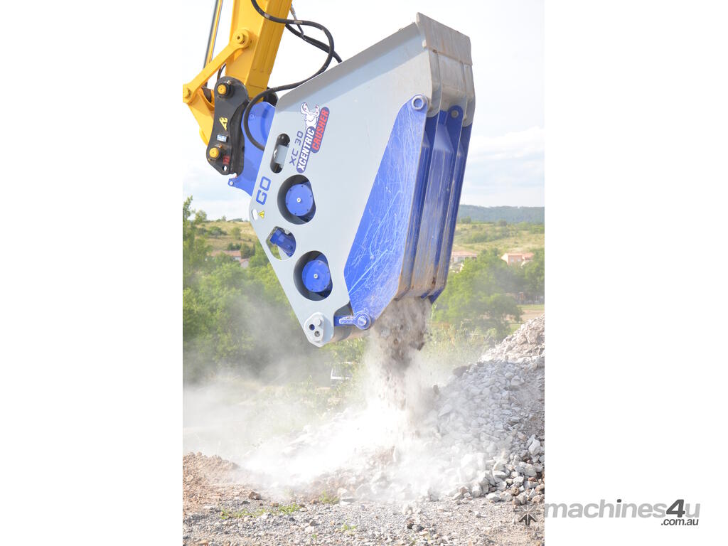 Xcentric’s XC30 crusher bucket, The world’s most technologically advanced crusher bucket, capable of delivering inexhaustible output production rates others can only dream of. Perfectly suited to the application of crushing Basalt, Granite, Reinforced Concrete & Demolition Materials with ease onsite.