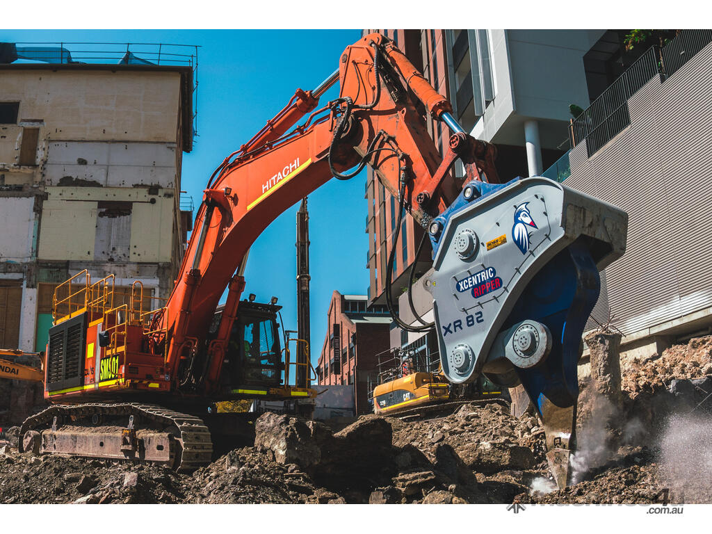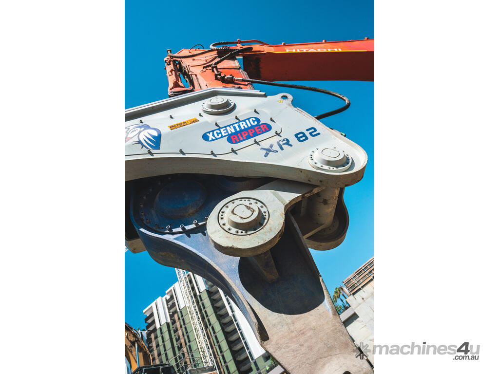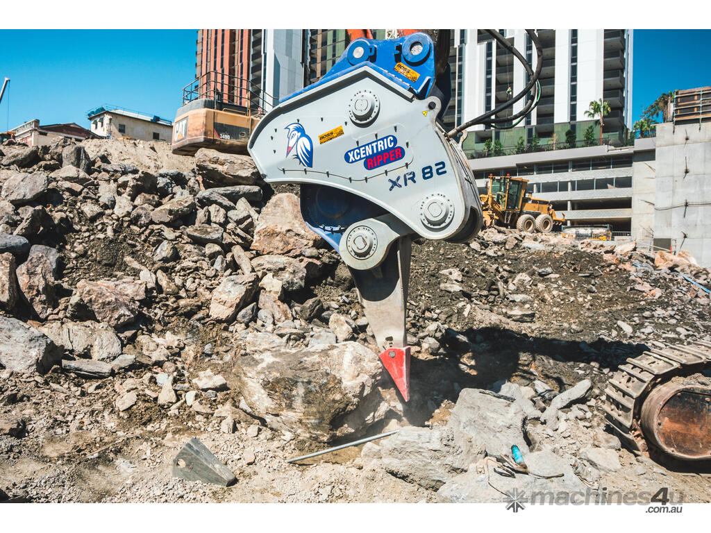 The XCENTRIC XR52 is an excavator hydraulic attachment designed for the mass extraction of rock in mining and civil applications. Developed with a patented system of “Impact Technology by accumulation of energy”, which in most instances makes the Xcentric Ripper up to 5 times more productive than hydraulic breakers.