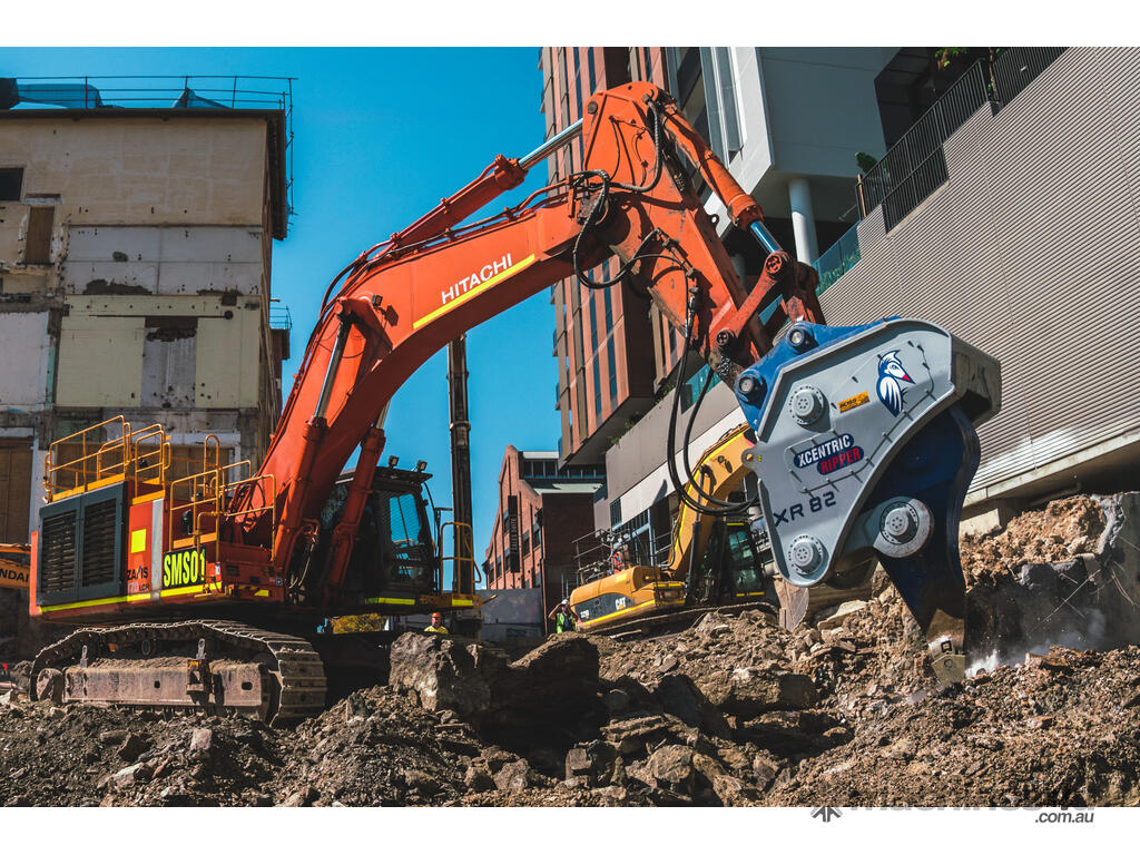 The XCENTRIC XR42 is an excavator hydraulic attachment designed for the mass extraction of rock in mining and civil applications. Developed with a patented system of “Impact Technology by accumulation of energy”, which in most instances makes the Xcentric Ripper up to 5 times more productive than hydraulic breakers.