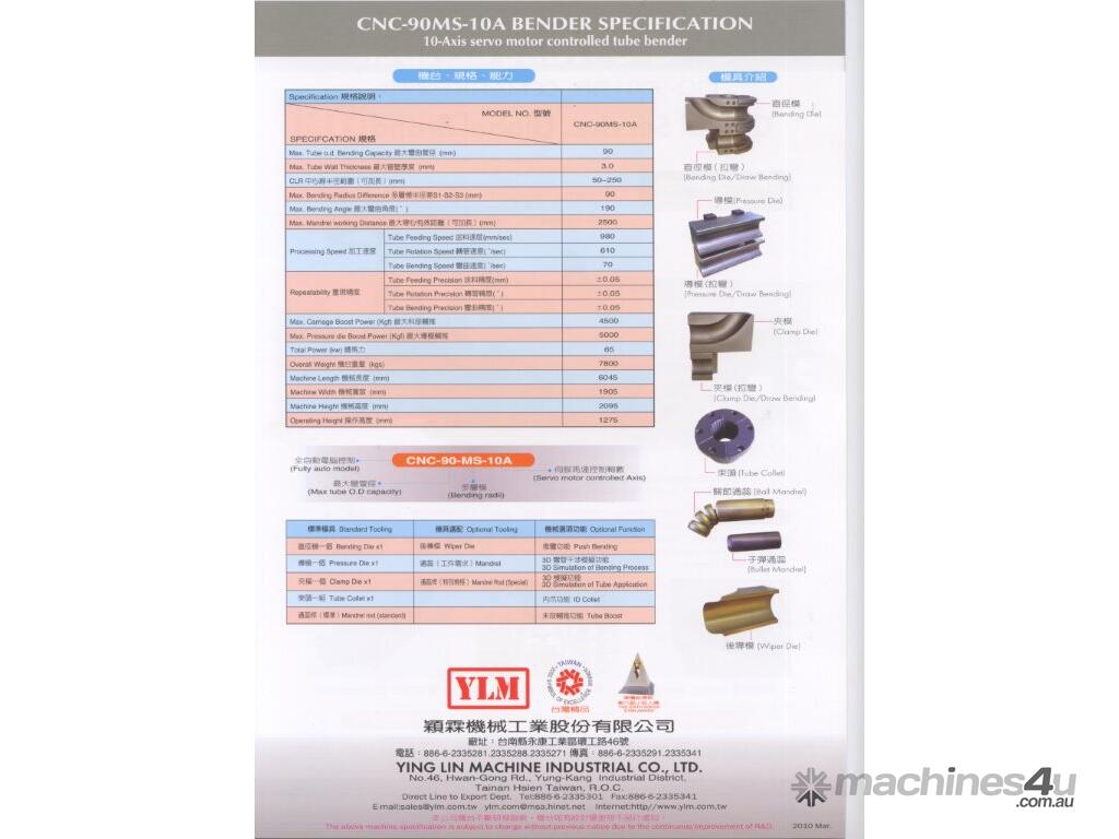 Max. tube o.d. bending capacity(Mild steel CLR1.5D)(mm) 100x2.8