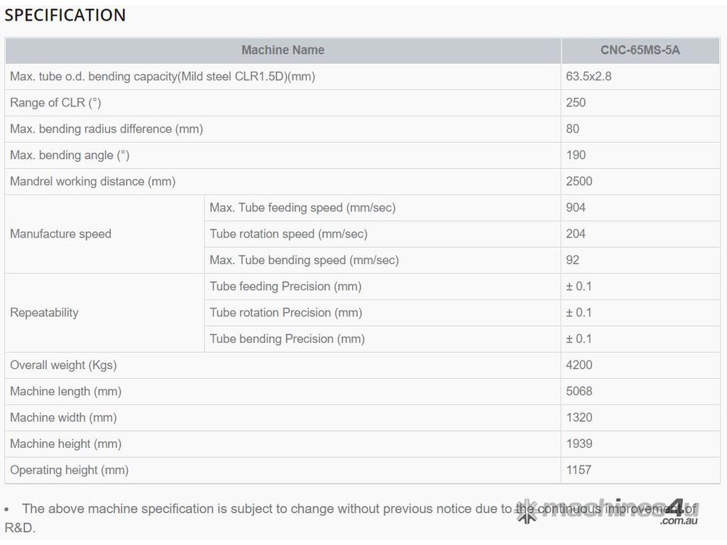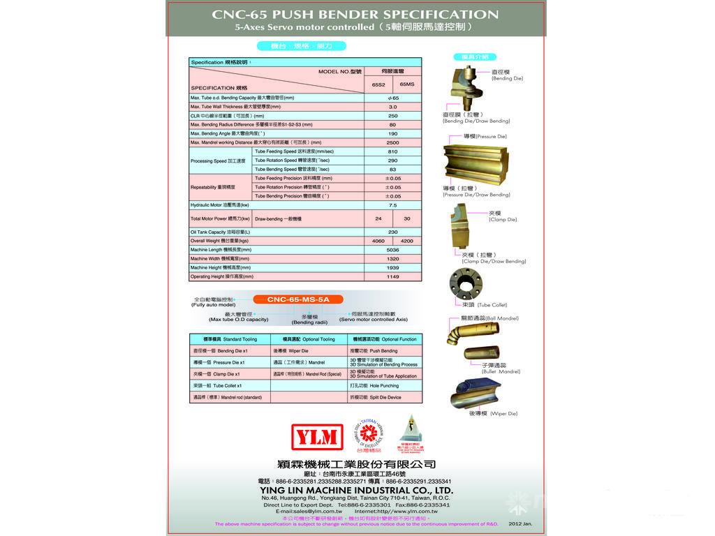 YLM CNC65 S2 Mandrel Bending Machine complete with
