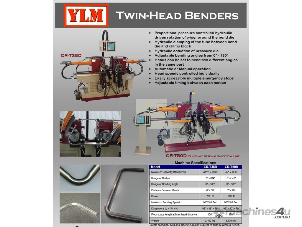 The CR-T38D and CR-T50D are NC controlled with the ability to bend multiple tubes at one-time. The Bend angles can be adjusted to bend at the same angle or two separate angles.