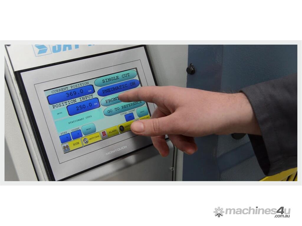 • German Elgo NC P40T Touchscreen control for backgauge positioning.