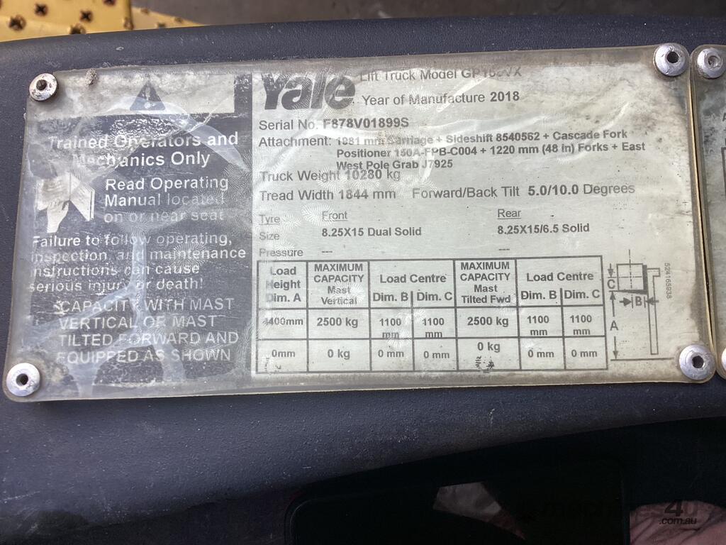 Yale 7 tonne forklift :      $55,000 AUD($60,500 Inc. GST)