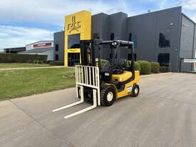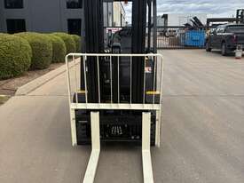 The forklift is powered by a fuel-efficient Yanmar LPG engine, delivering strong performance with reduced emissions and dependable running costs. The combination of smooth transmission and responsive hydraulics ensures precise load handling and fast cycle times.