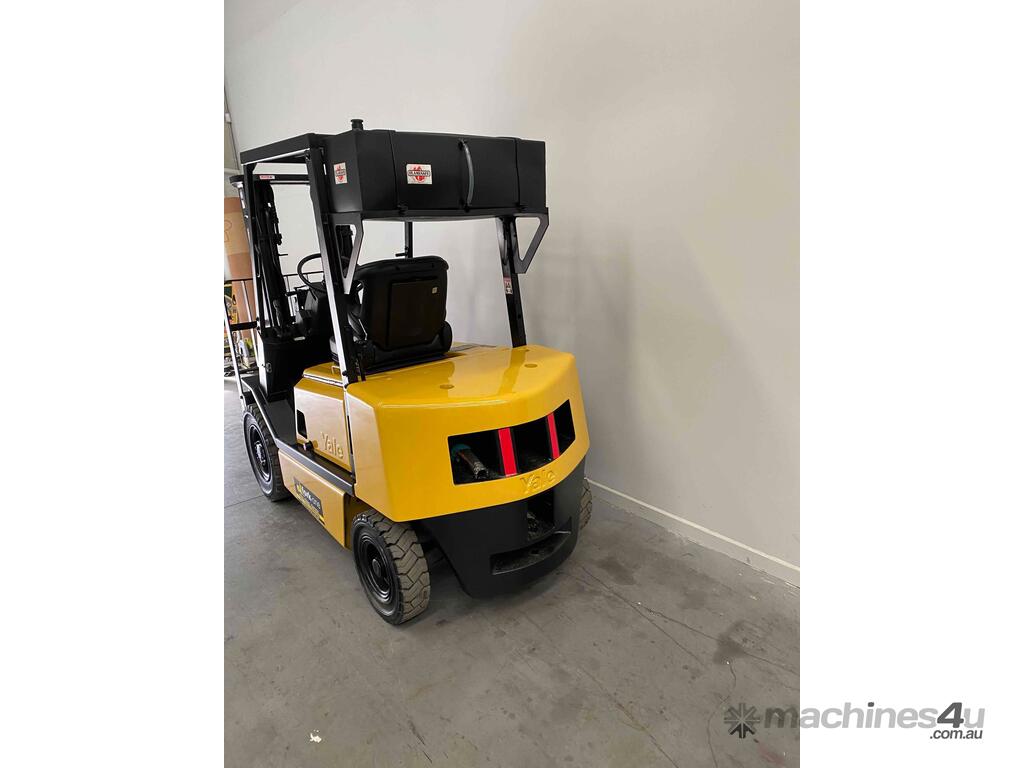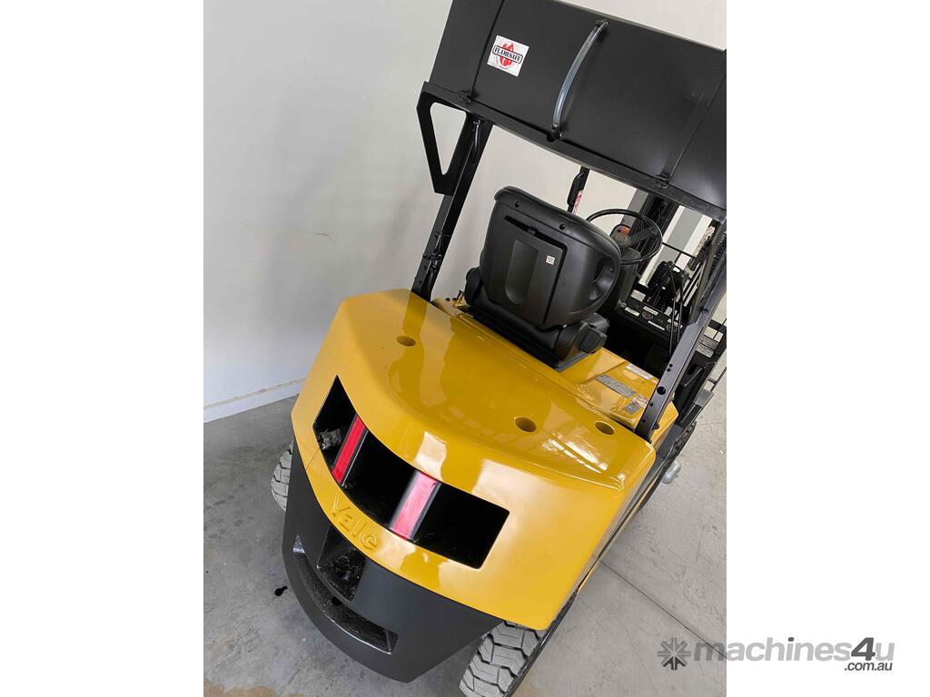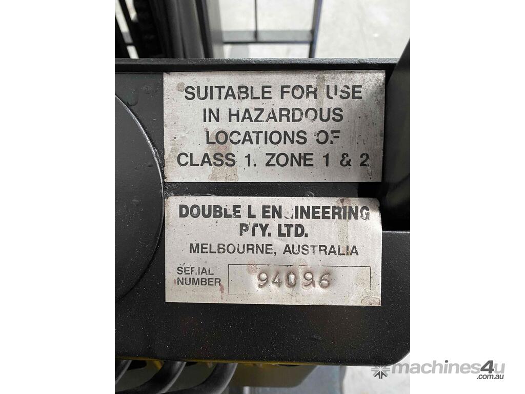 Yale 2.5 tonne diesel Zone 1 container mast flameproof forklift with solid tyres and sideshift. This flameproof diesel has been extremely well maintained and has a purpose built battery trolley for starting purposes. This unit can be viewed by appointment only in Pakenham. This unit is not fitted with an hour gauge.