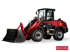 Yanmar V100 wheel loader. Articulated steering. Four-cylinder turbocharged diesel engine. 5800 kg operating weight.