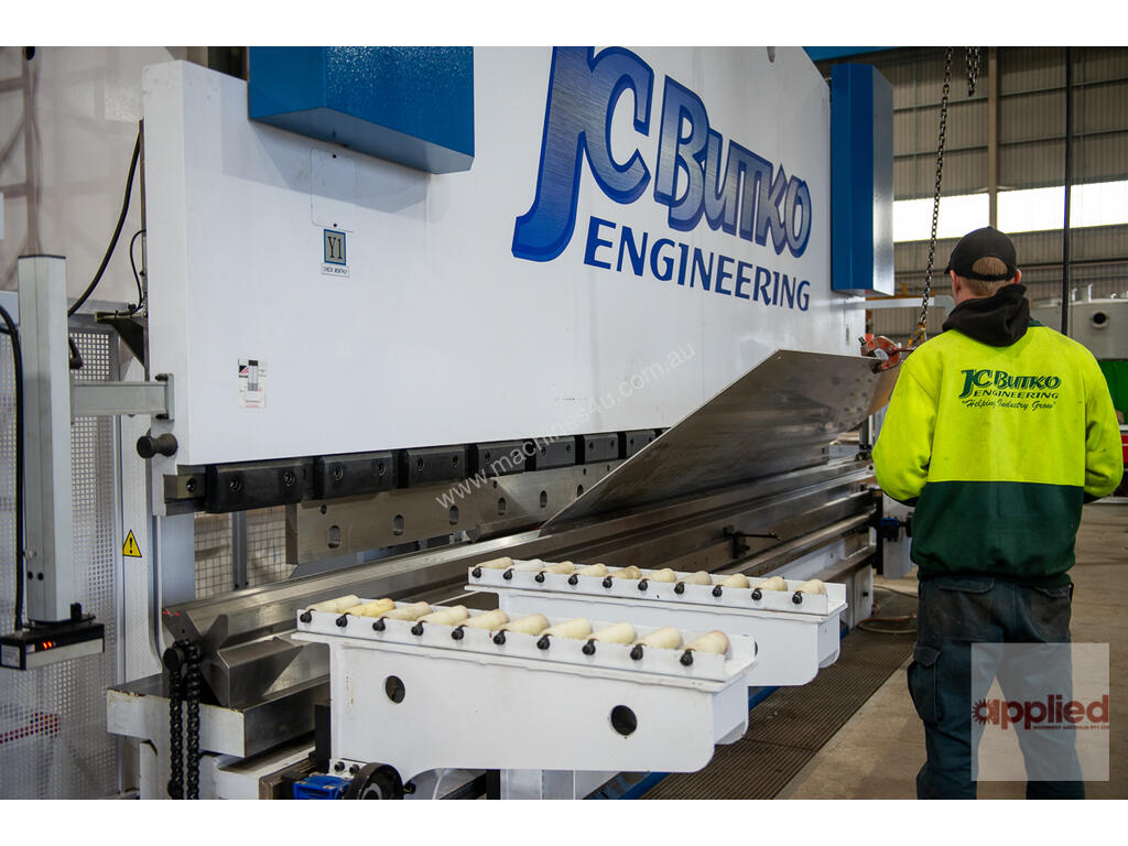 This 1000 ton x 8200mm machine installed at Primero Profiles in NZ is a beast of a machine ..... though it's just a baby compared to the 5000 ton x 26000mm Yawei machine at Wegener Sheetmetal in Germany. (See photos)