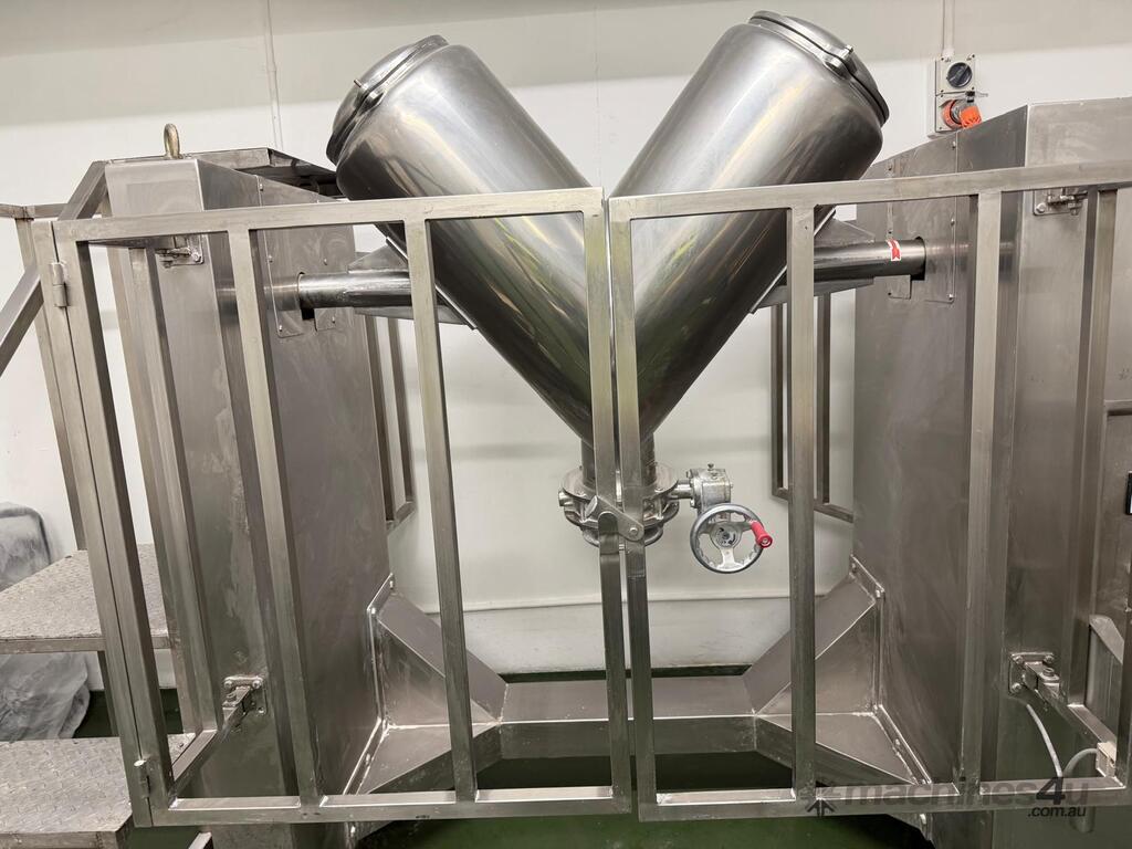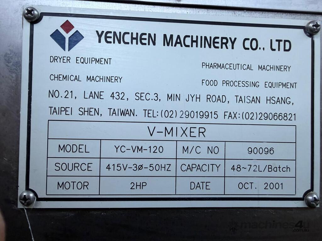 A genuine Yenchen YC-VM-120 V-Mixer with 48–72L capacity and 2HP drive, designed for steady, uniform blending across food, pharma, and chemical applications.