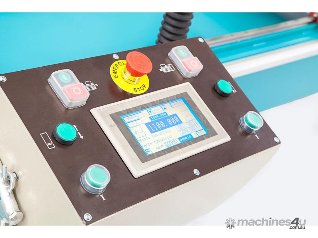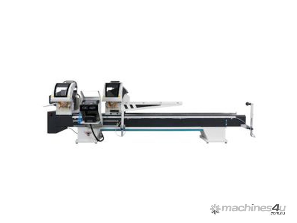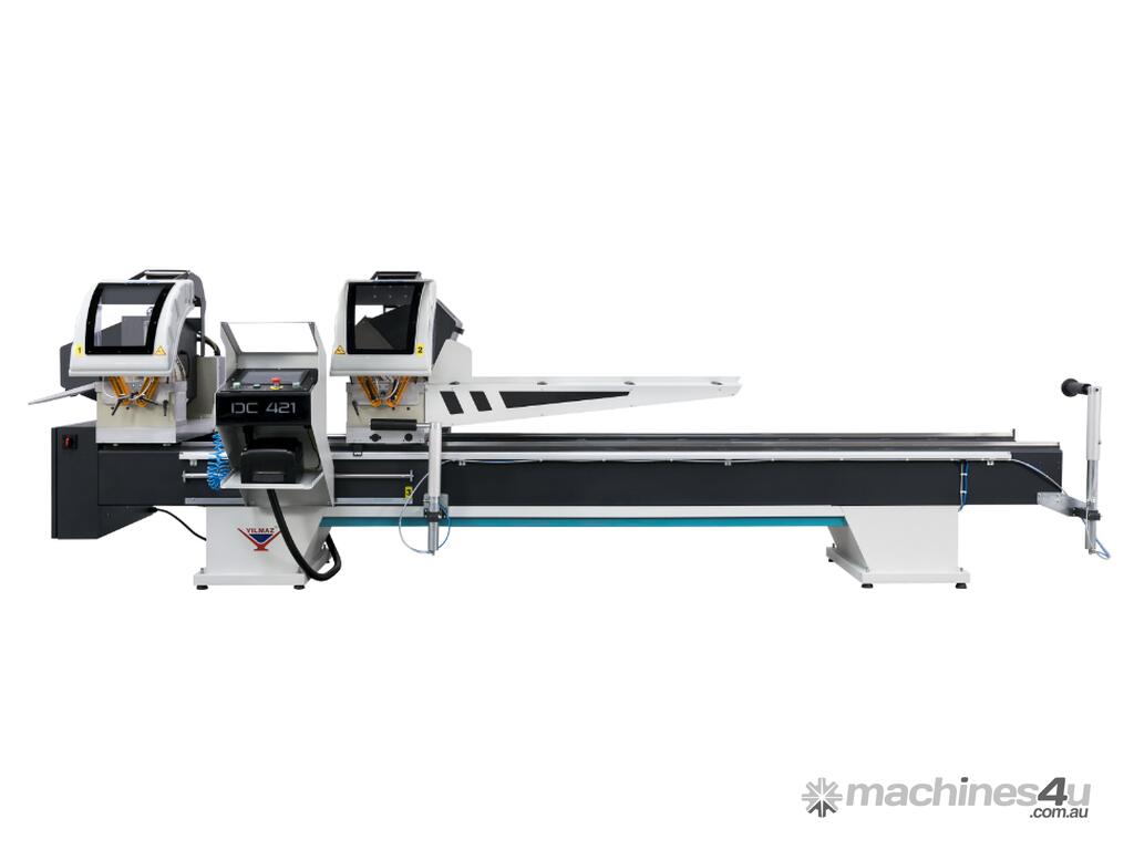 The Yilmaz DC421PS double mitre saw for Aluminium, uPVC and Timber is the perfect automatic sawing solution with Manual cutting and Auto feed repetitive cutting.