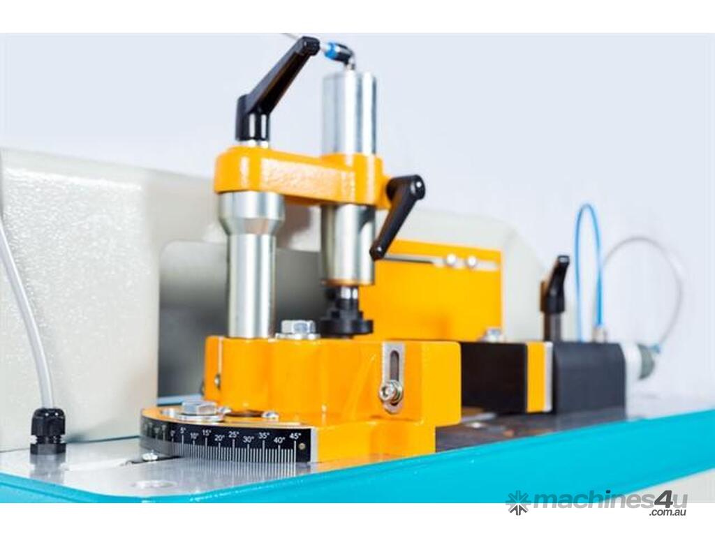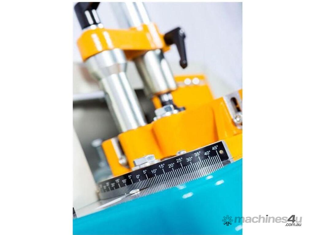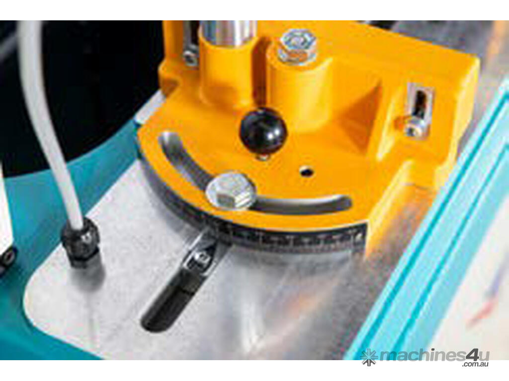 Yilmaz KM215P Semi Automatic End Miller is ideal for slotting and/or notching the ends of aluminium and uPVC profiles. The Yilmaz End-milling Machine has many uses in the production of butt joint or rebated joint frames. The advantage of this machine is its versatility as cutters for the machine can be quickly changed without the need for tools by using the quick release system fitted to the spindle. Cutter stacks can be made to suite various profiles and when combined with the EM215's quick tool change super fast and efficient processing of profiles is possible. The EM215 is also equipped with hydro pneumatic cutter feed system which maintains consistent cutter feed throughout the machining operation.