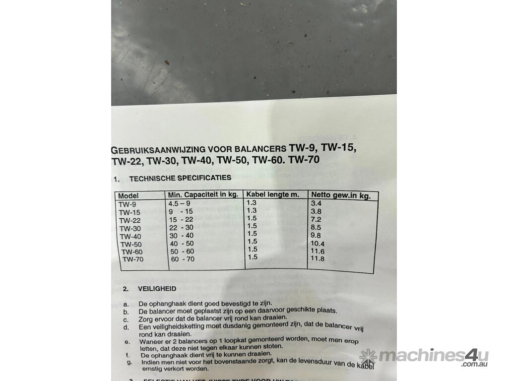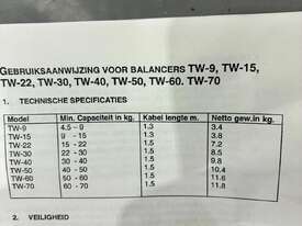 This listing is for a Yokota Europa BV TW-40 Spring Balancer, manufactured in Amsterdam.