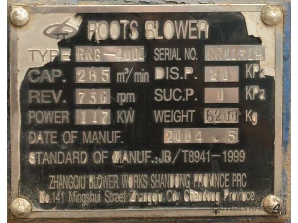 ZHANGQU / ZHANG GU RRG-400D 117kW 16" 400mm 285m3/min roots lobe vacuum blower 6.2tonne