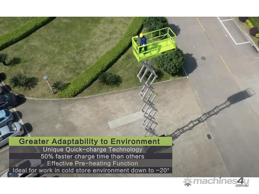 Electric powered scissor lifts, with work height ranging from 7.8m to 15.7m, providing high efficiency and safe operation around jobsites.