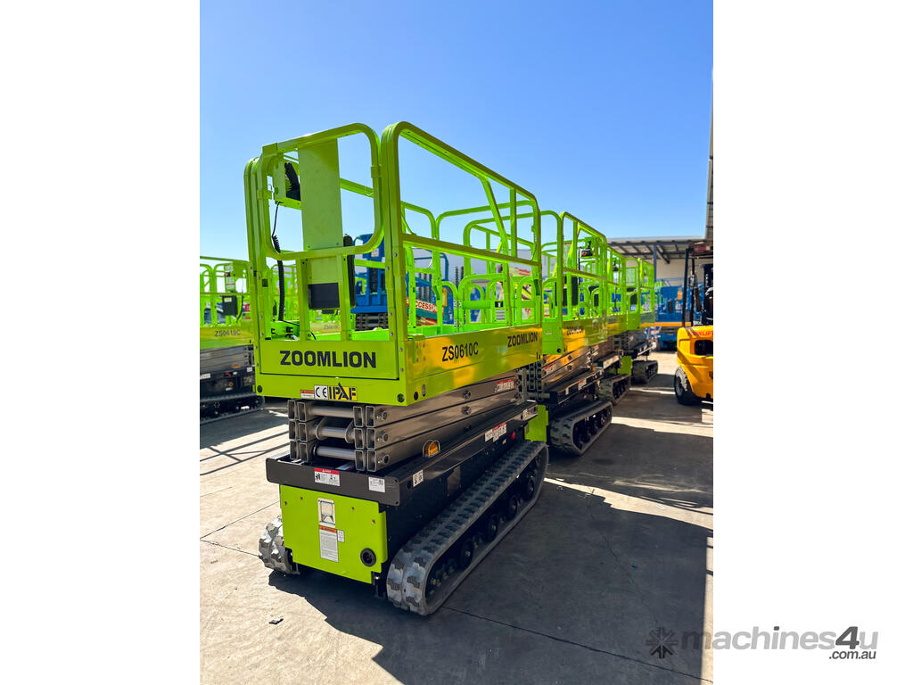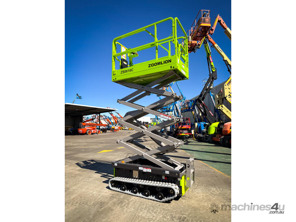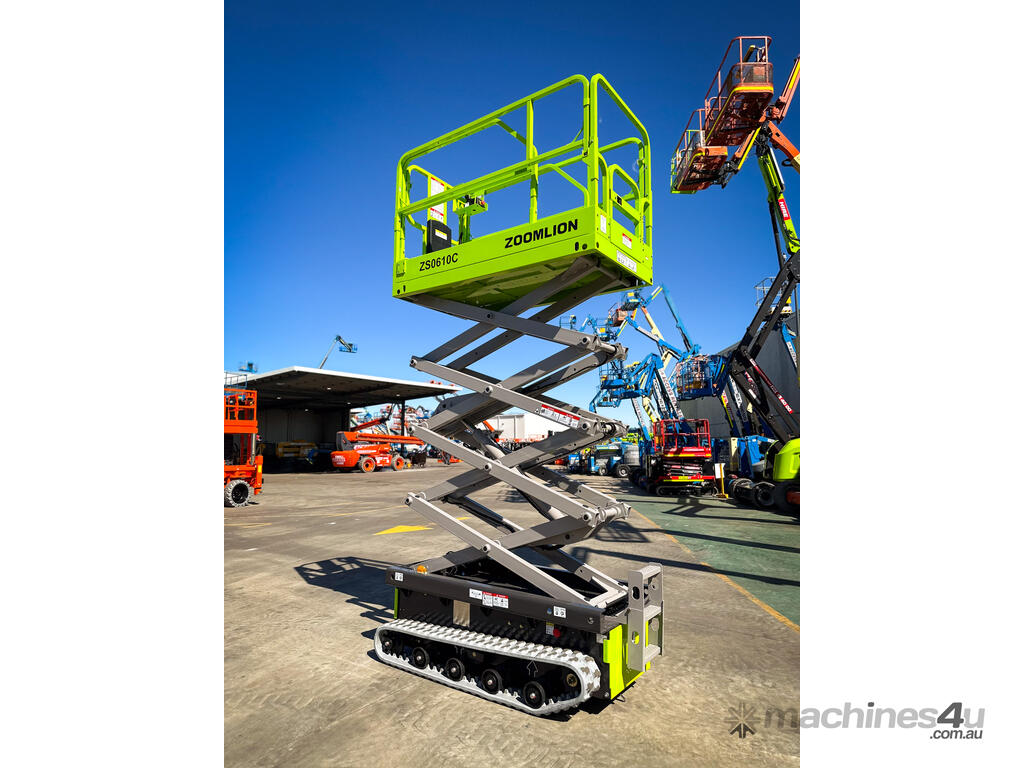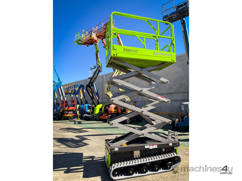 ZS0610C 28ft Electric Tracked Scissor Lift - 250kg SWL, 6.8m Platform Height :      $23,000 AUD($25,300 Inc. GST)