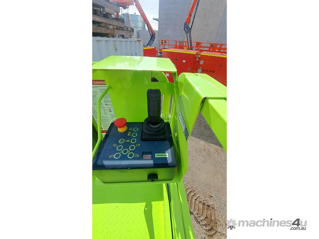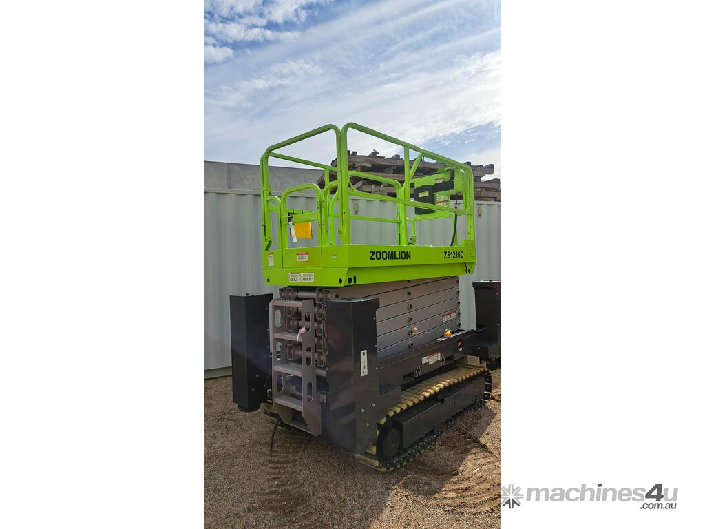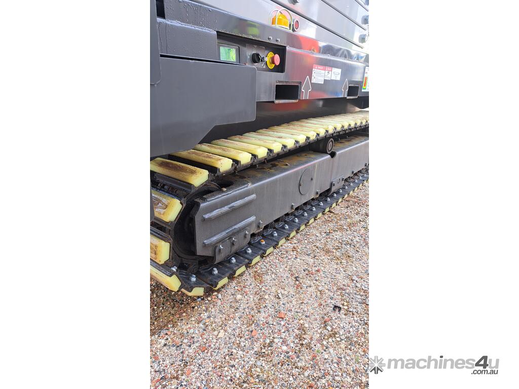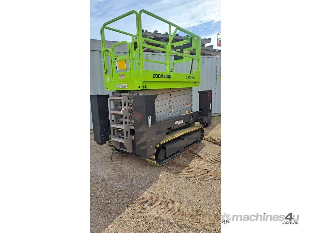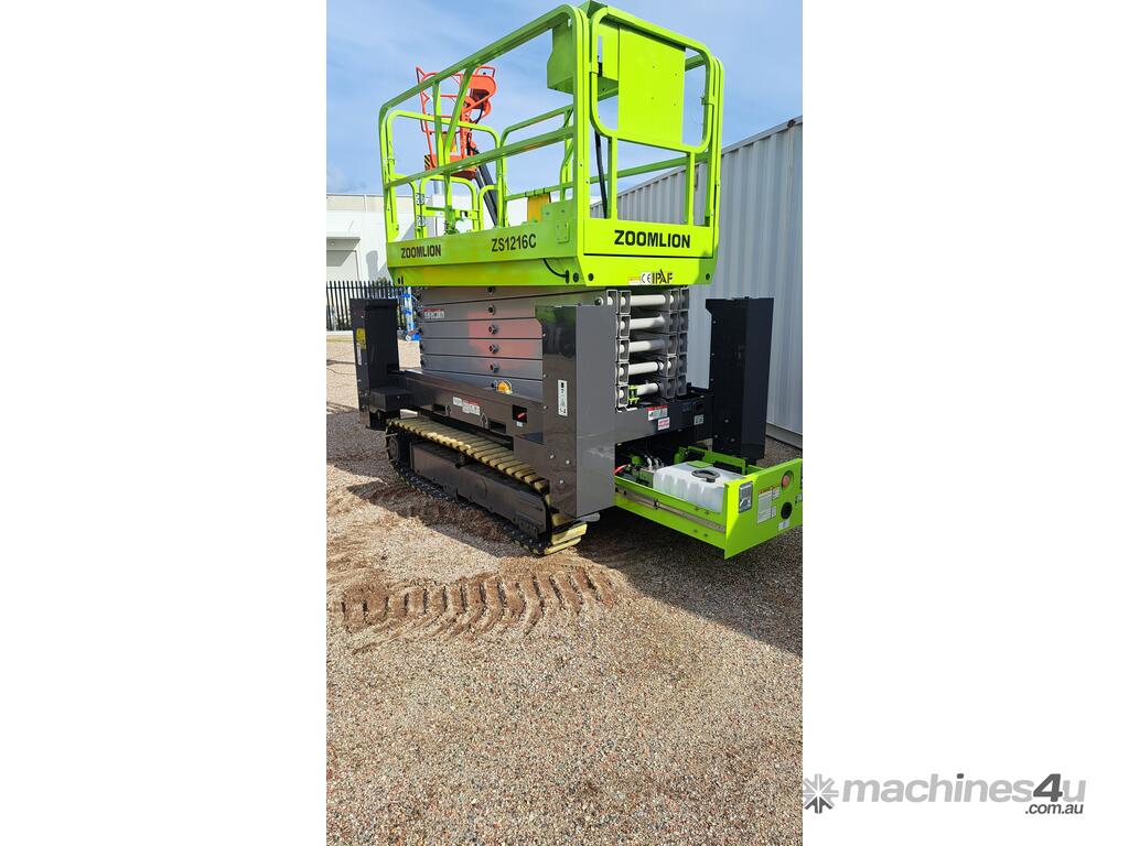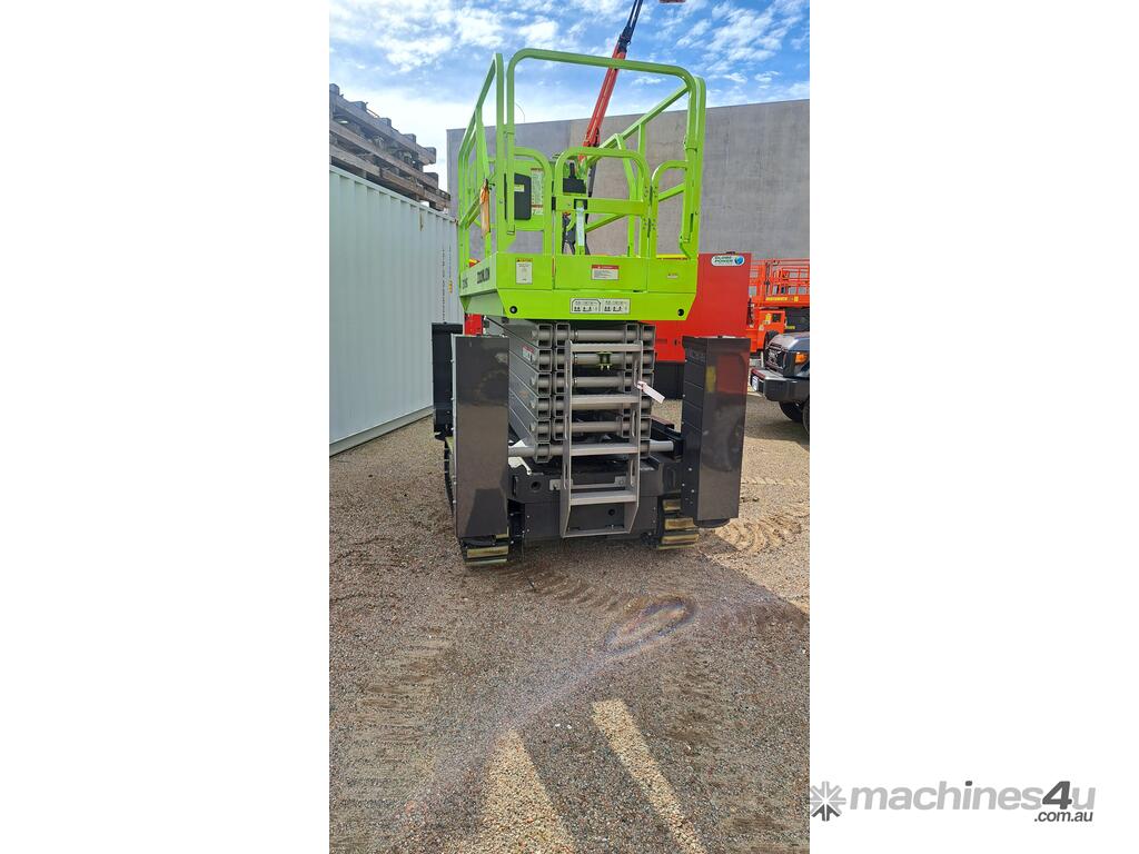 The ZS1216C is a 38ft electric tracked scissor lift designed for rough-terrain access where stability and traction are essential. It delivers a working height of 45ft 3in (13.8m), platform height of 38ft 9in (11.8m), and a 350kg lift capacity for safe elevated work. The 1.6m wide tracked undercarriage provides strong grip on uneven ground while maintaining low ground pressure for softer surfaces. Dual rear-wheel drive motors and proportional controls provide smooth performance during elevated and stowed travel.
