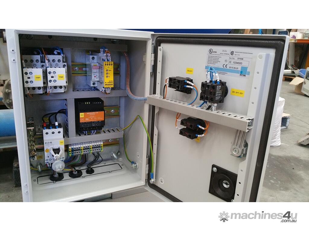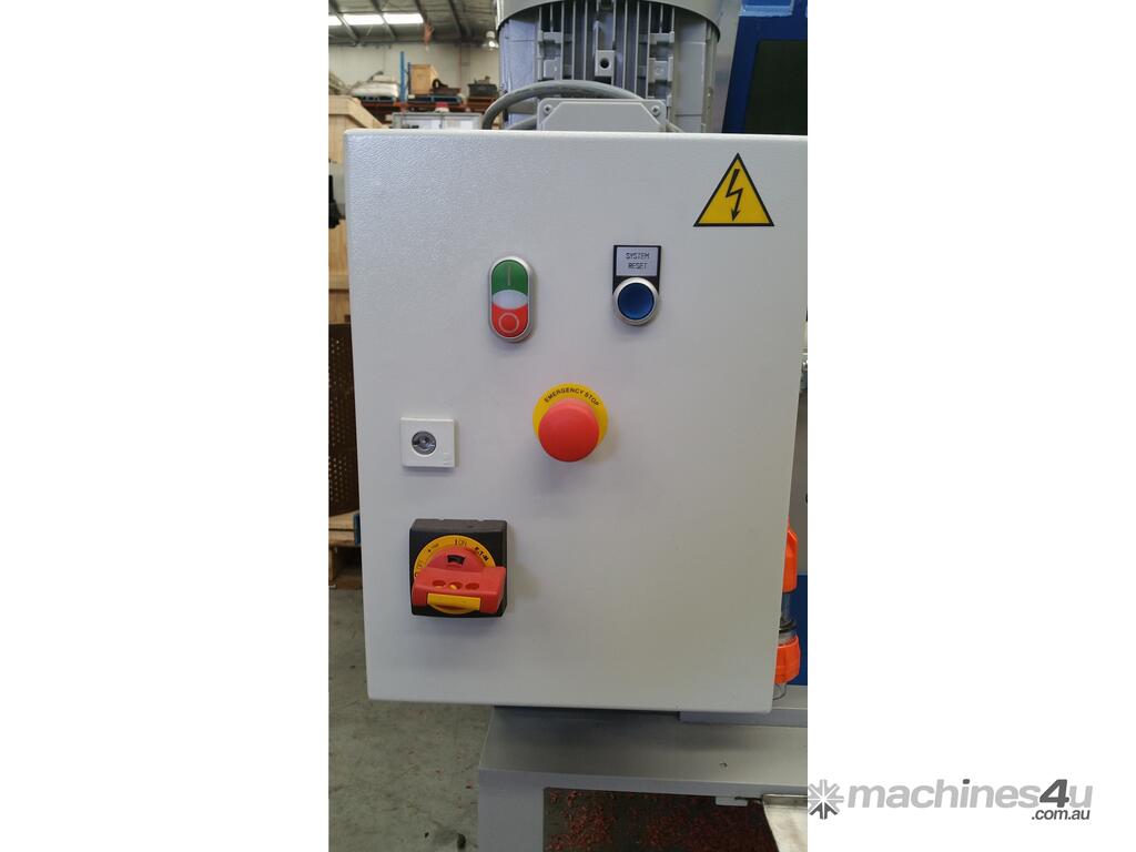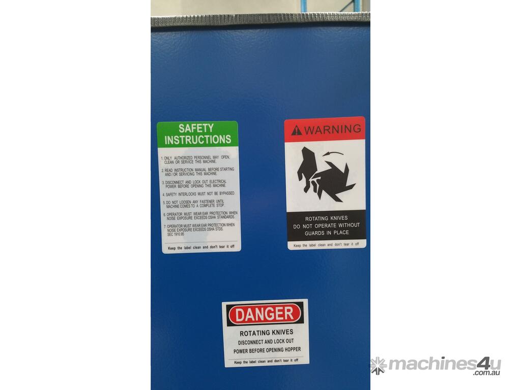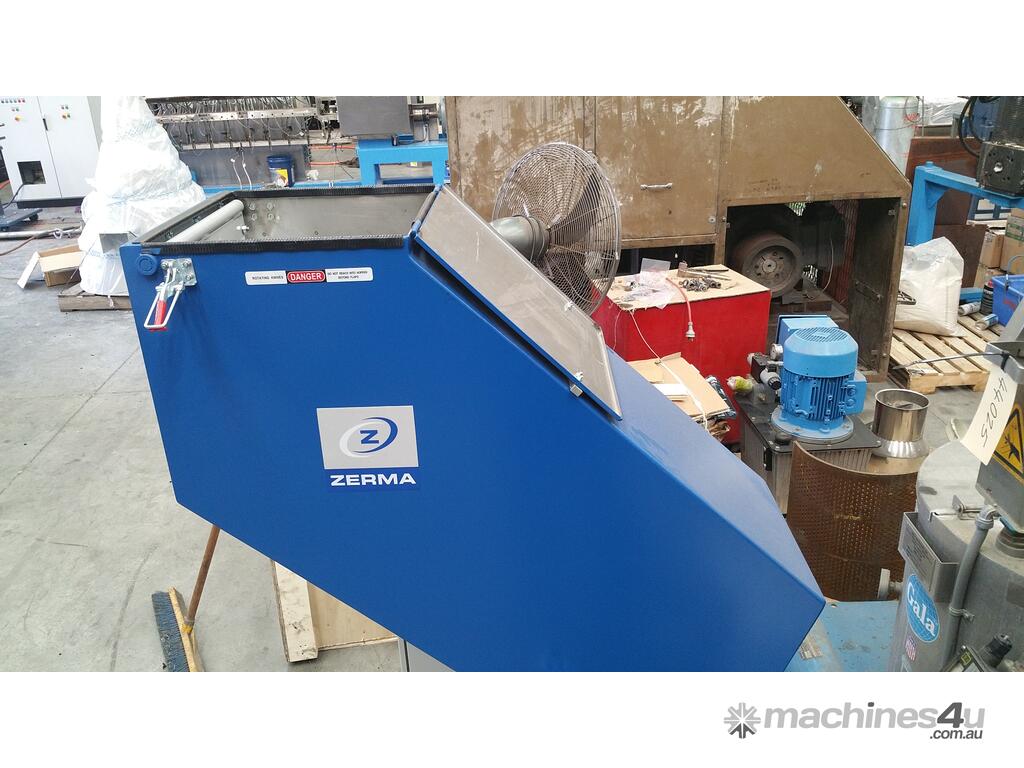 The V shaped arrangement of the staggered rotor blades holds pre-cut material in the center of the cutting chamber. This prevents material sticking to the side walls and considerably reduces wear on the grinding chamber walls when processing fibre and glass reinforcesd plastics. The staggered rotor blades means only one blade cuts at once thus increasing the cutting torque.