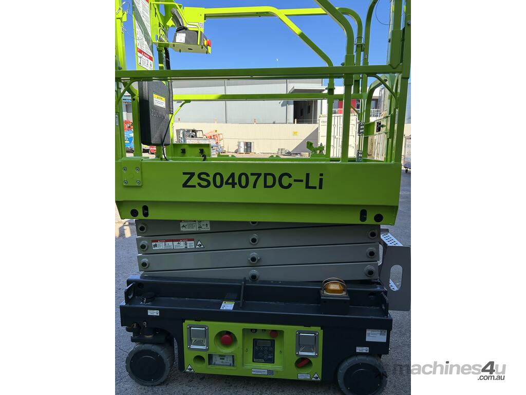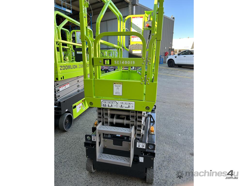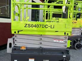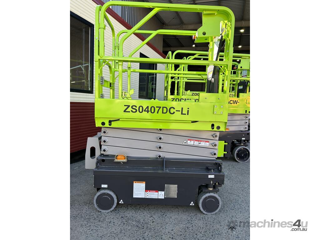 The Zoomlion ZS0407DC-Li is a compact 14 ft electric scissor lift with lithium battery power, ideal for indoor access and maintenance in tight spaces.