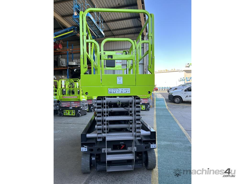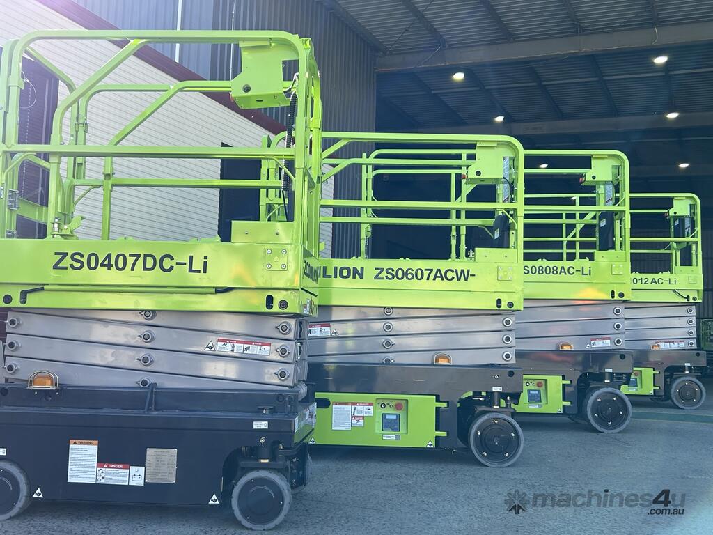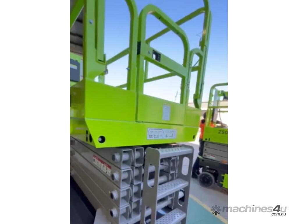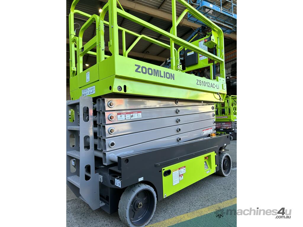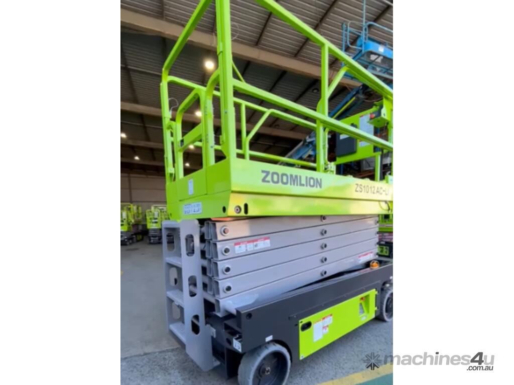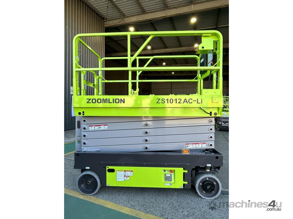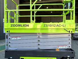 The Zoomlion ZS1012AC-Li is a brand-new electric scissor lift with a platform height of 9.75 m (32 ft) and a working height of 11.75 m, ideal for indoor fit-outs, warehousing and slab construction.