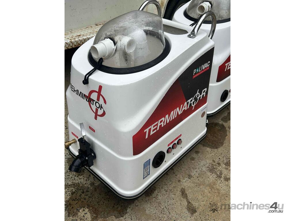 Polivac Terminator is a portable Carpet Extractor for commercial use on smaller carpeted areas and upholstery; it is also ideal for flood recovery. This compact model features a 220 PSI working pressure, a 50 Litre Solution Tank with a 2- Litre Recovery Tank, plus a clear dome to see the level of solution pick-up