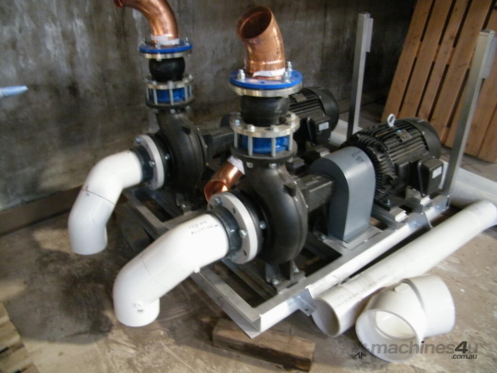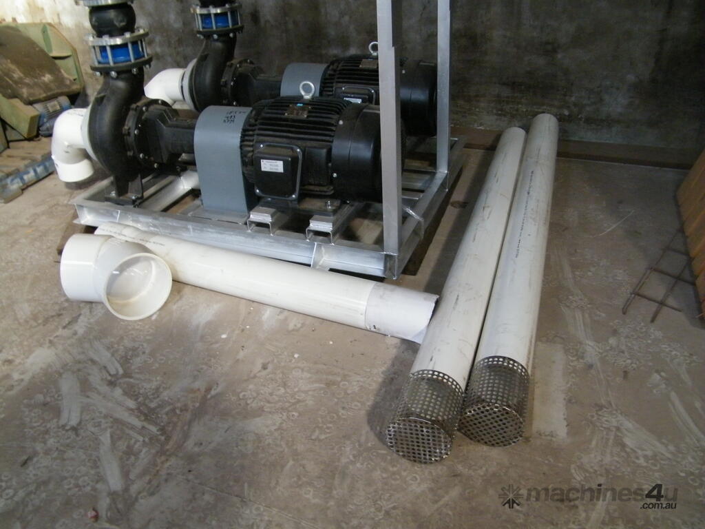 pumps twin set new 2 x 18.5 kw 1463 rpm and 2 x Grunfos NK125 200/226 242.3 m 3 per hour 12.9 mt head with pipeing also other pumps including submerible and trash pump